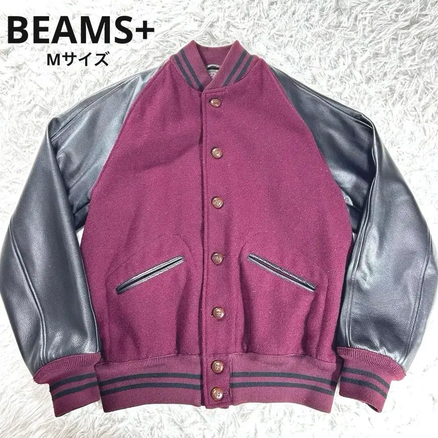 BEAMS+ 바시티 자켓 멜톤 가죽 아메트라 M 보르도 블랙