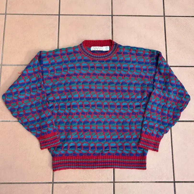 90s COOGI 스타일 USA 제조 3D 코튼 니트 레어 컬러