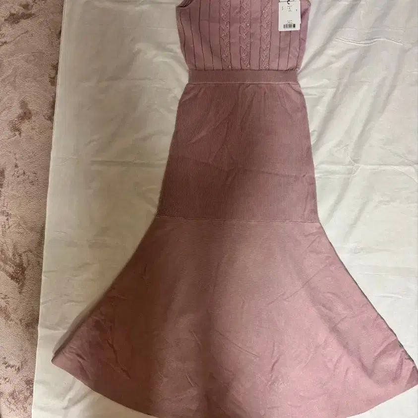 자동 번역되었어요. 원문보기뜨개질 디자인의 슬리브리스 니트 원피스, 플레어 스커트 스타일.