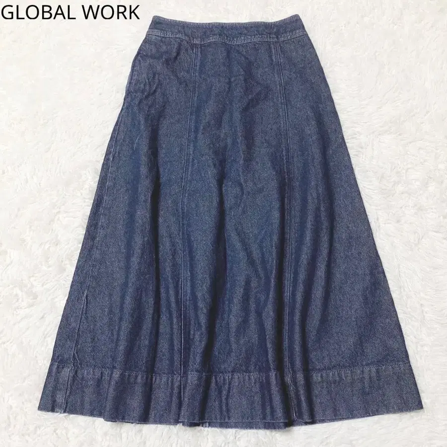 글로벌 워크 데님 스커트 인디고 L 플레어 롱 기장 면 100%