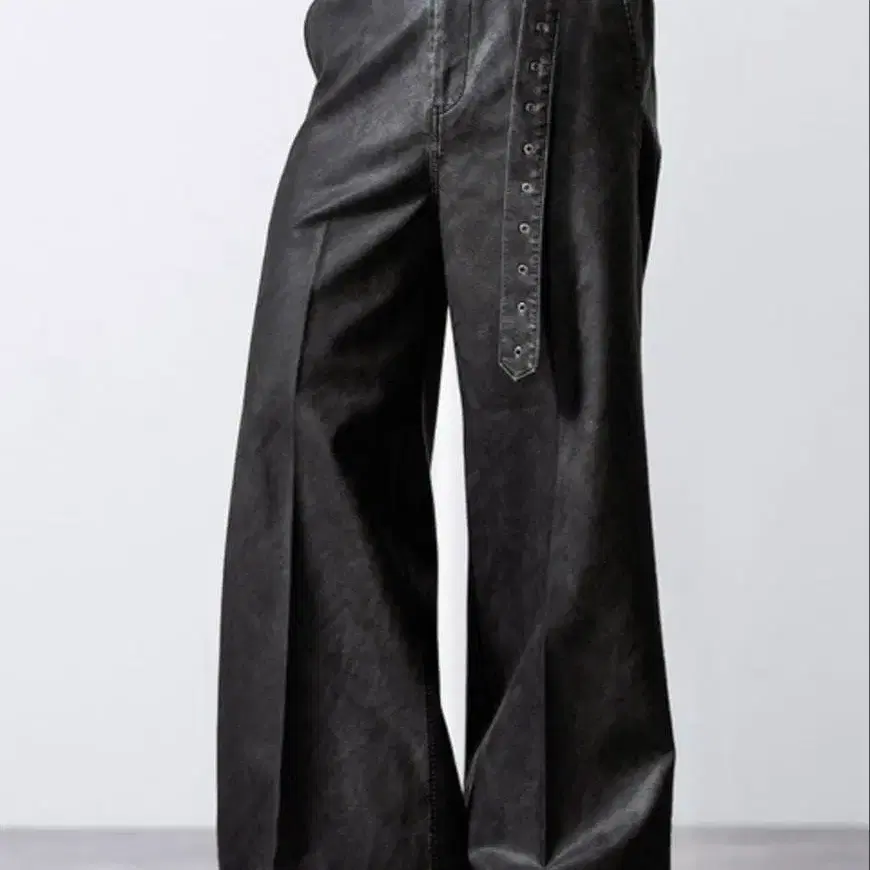 CLEL 빈티지 디자인 벨티드 플레어 인조 가죽 팬츠 블랙 계열 1