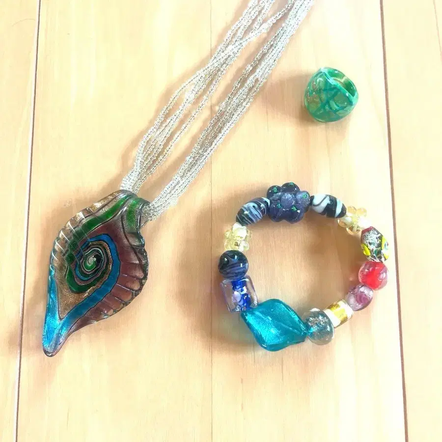 수입 이탈리아제 베네치안 유리 목걸이 팔찌 반지 3점