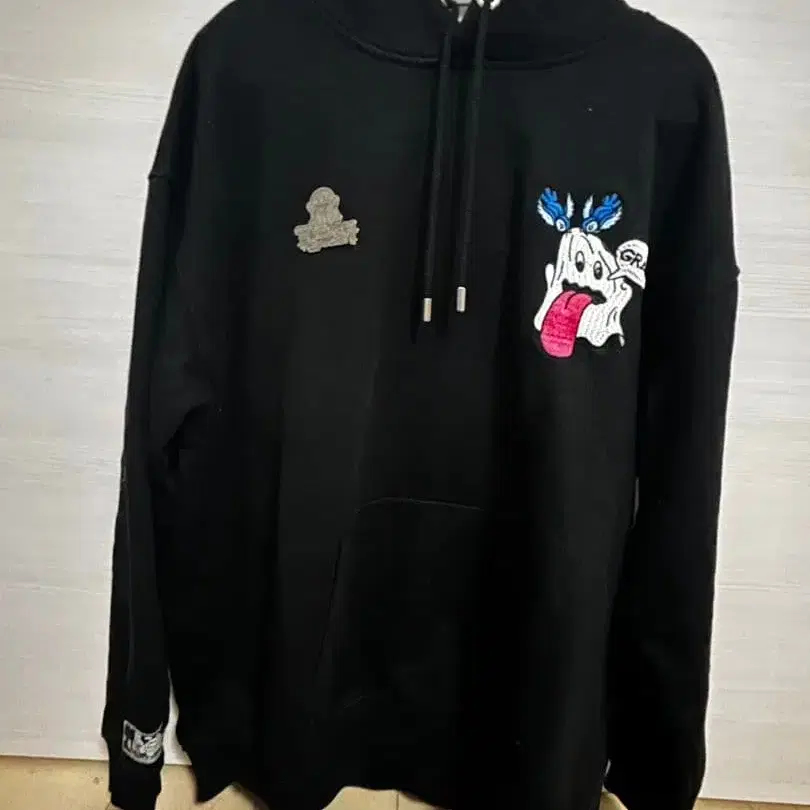 에이젬 캐릭터 자수 후드 부착 후드티 블랙