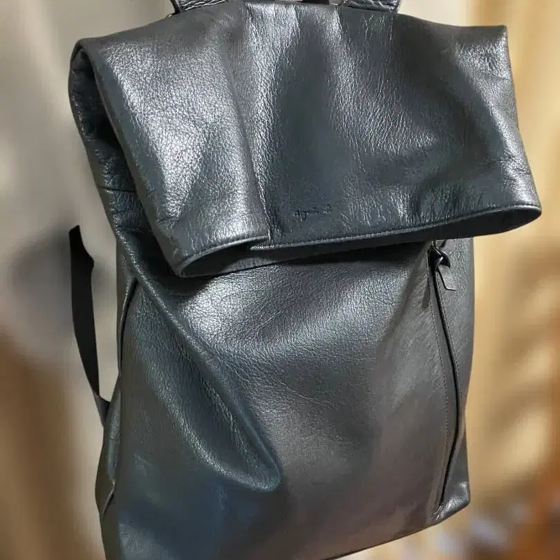 agnes b. 에네스베 경량 백팩 백 소가죽 가죽 블랙