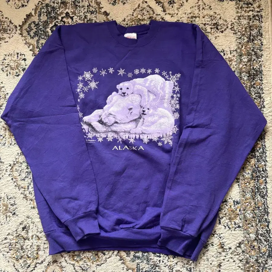 구제 의류 헤인즈 Hanes 애니멀 무늬 맨투맨 북극곰 패턴 퍼플 XL