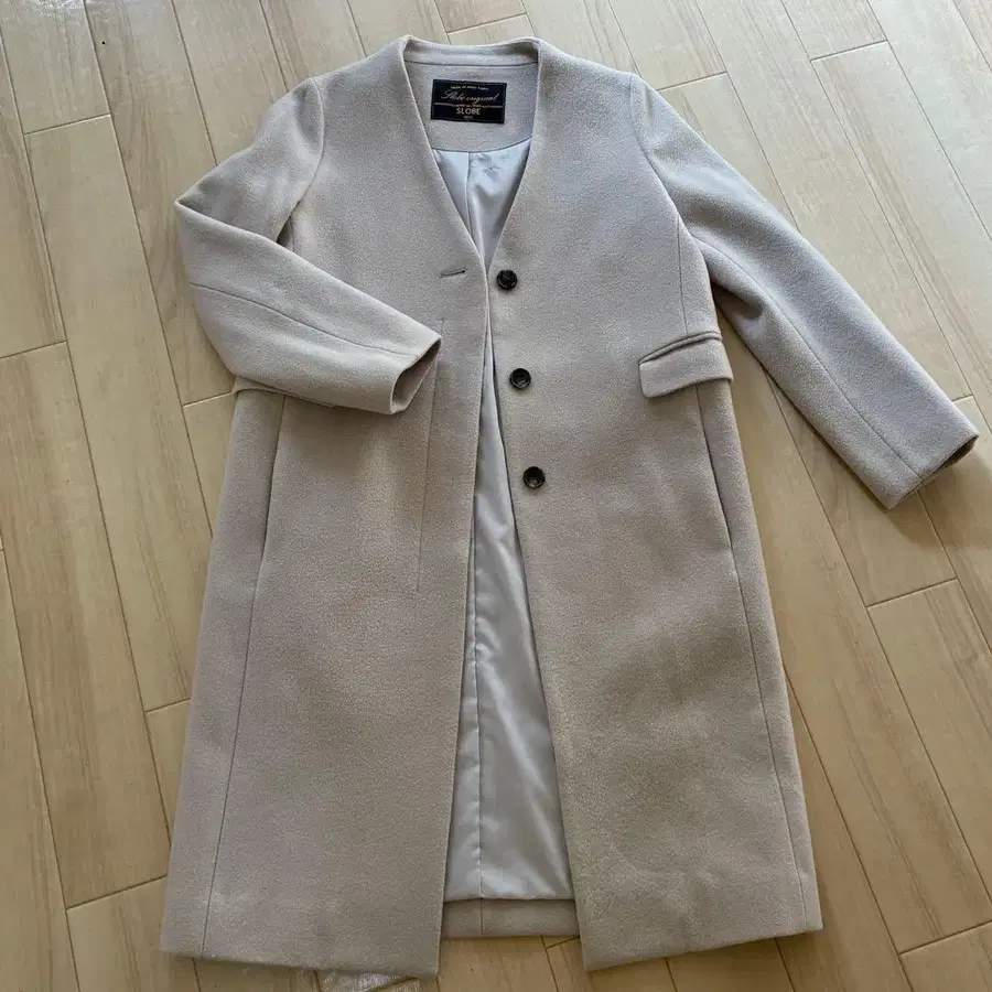 슬로브 이에나 울 100% 노카라 코트 롱 코트