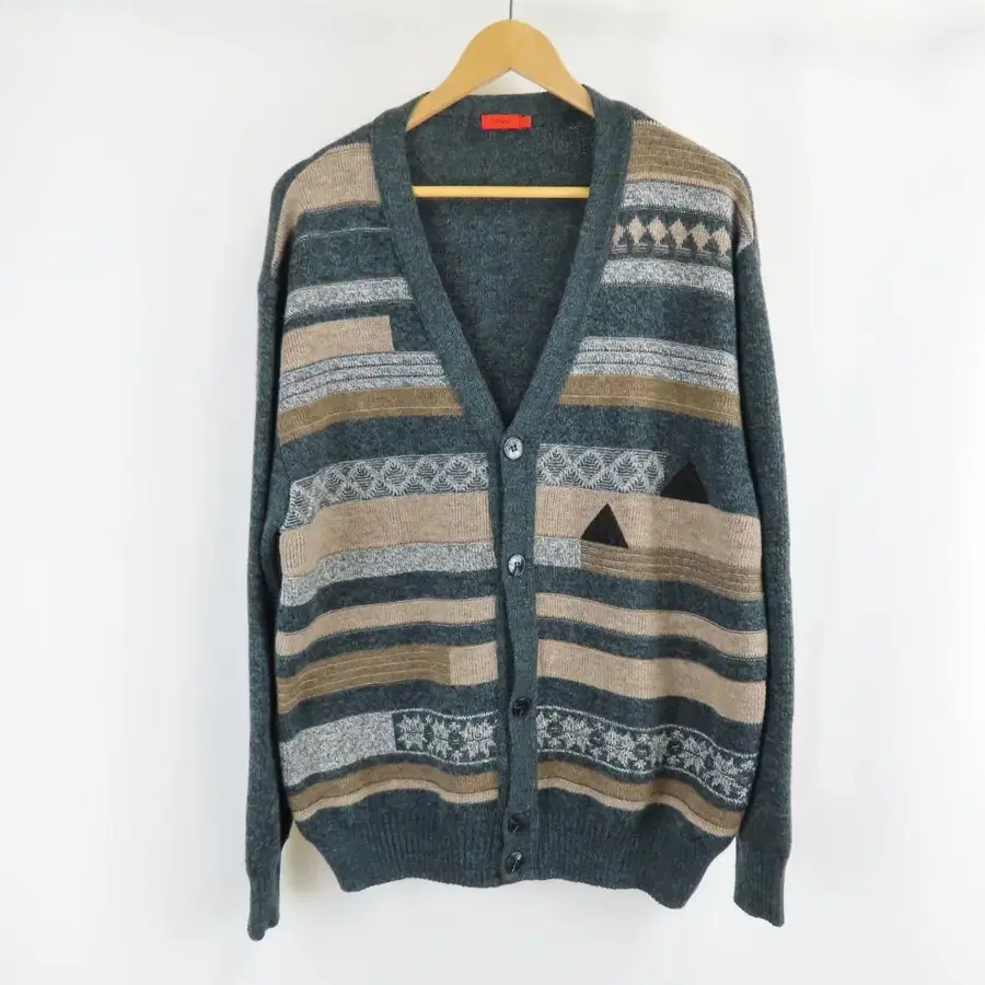 새상품급 Tissaia 울 아크릴 보더 니트 가디건 L 구제 의류