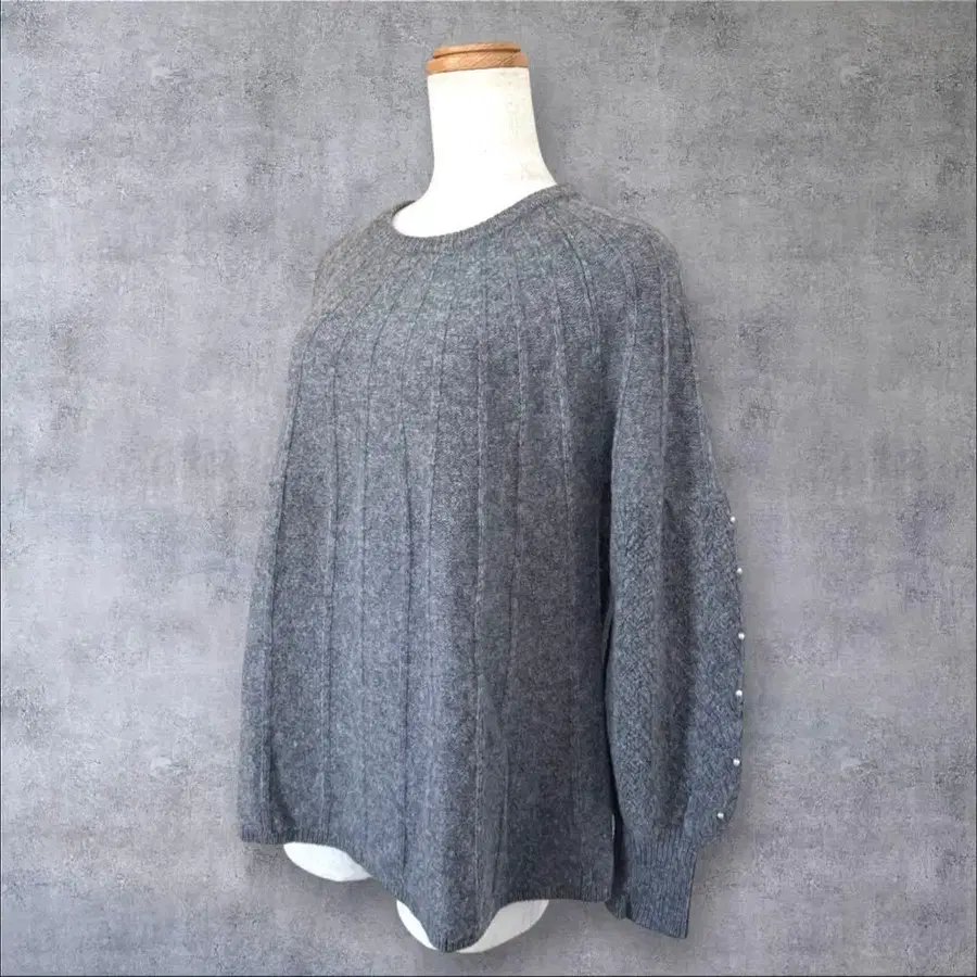 새상품급 슬로브 이에나 펄 장식 패턴 편직 풀오버
