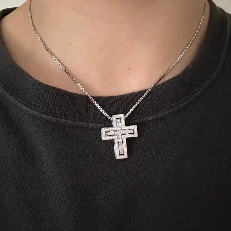 크로스형 목걸이 모이사나이트 50cm 조절 가능