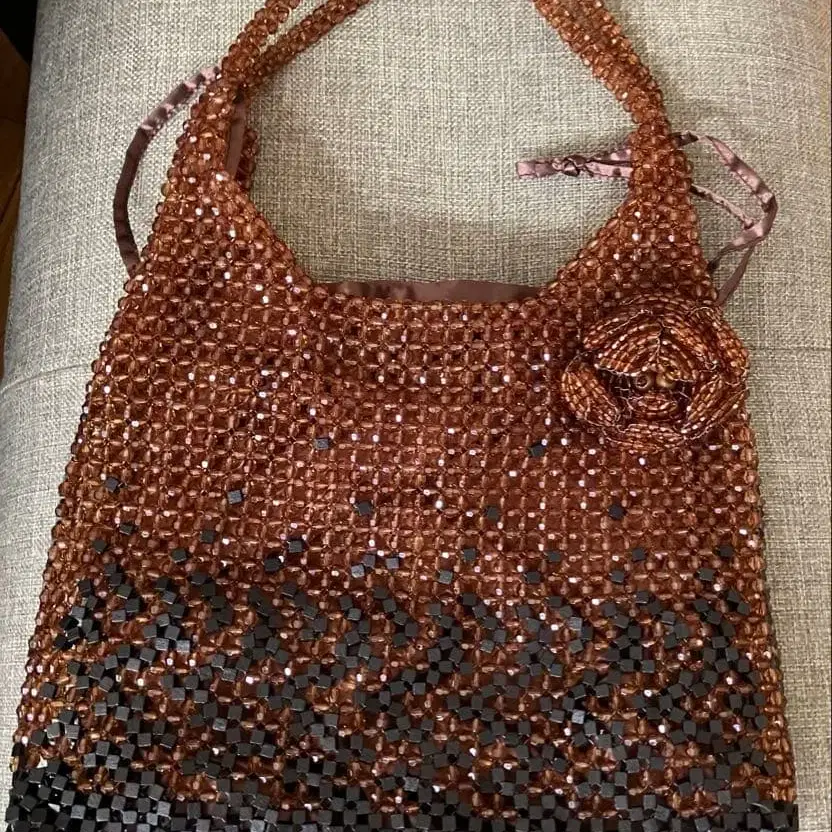 비즈 뜨개 핸드백 브라운 블랙