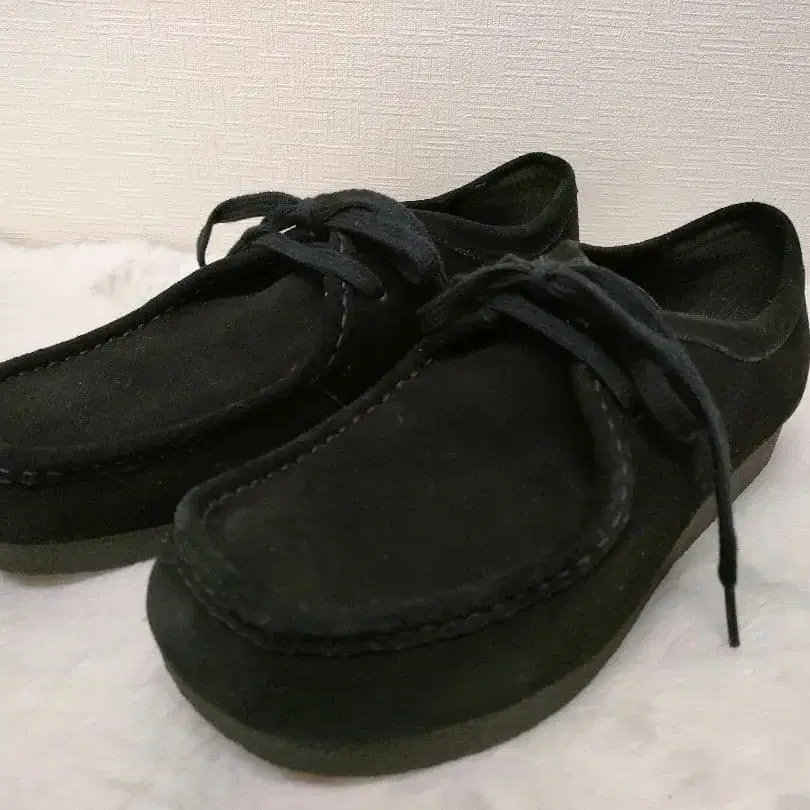 • gu 블랙 스웨이드 천연 가죽 클락스 왈라비 스타일 모카신 슈즈