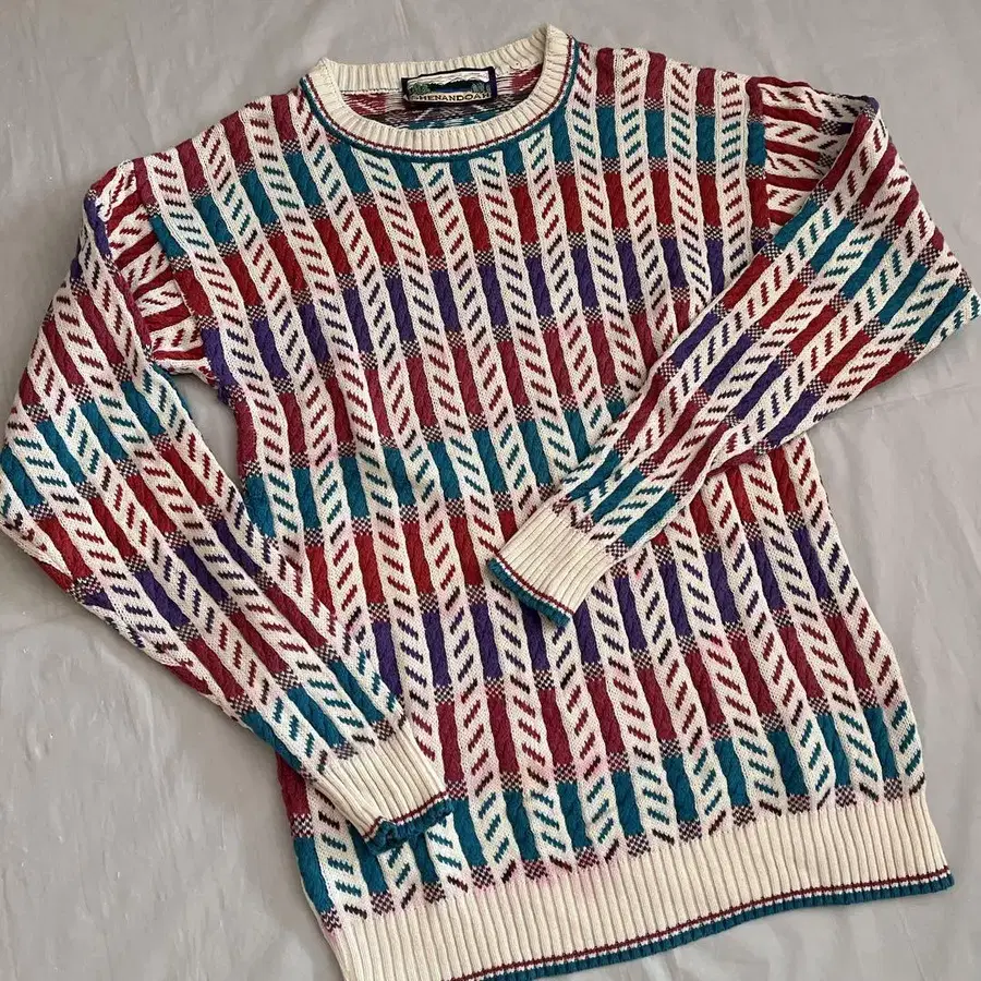 크루넥 스웨터 구제 니트 올 패턴 보더 멀티 컬러 미국제