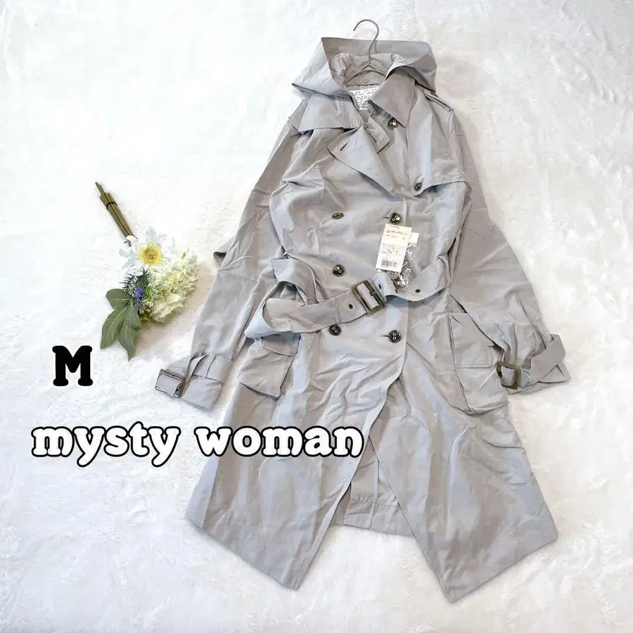 가볍고 스타일리시한 트렌치코트, M 사이즈, 폴리에스테르 소재.