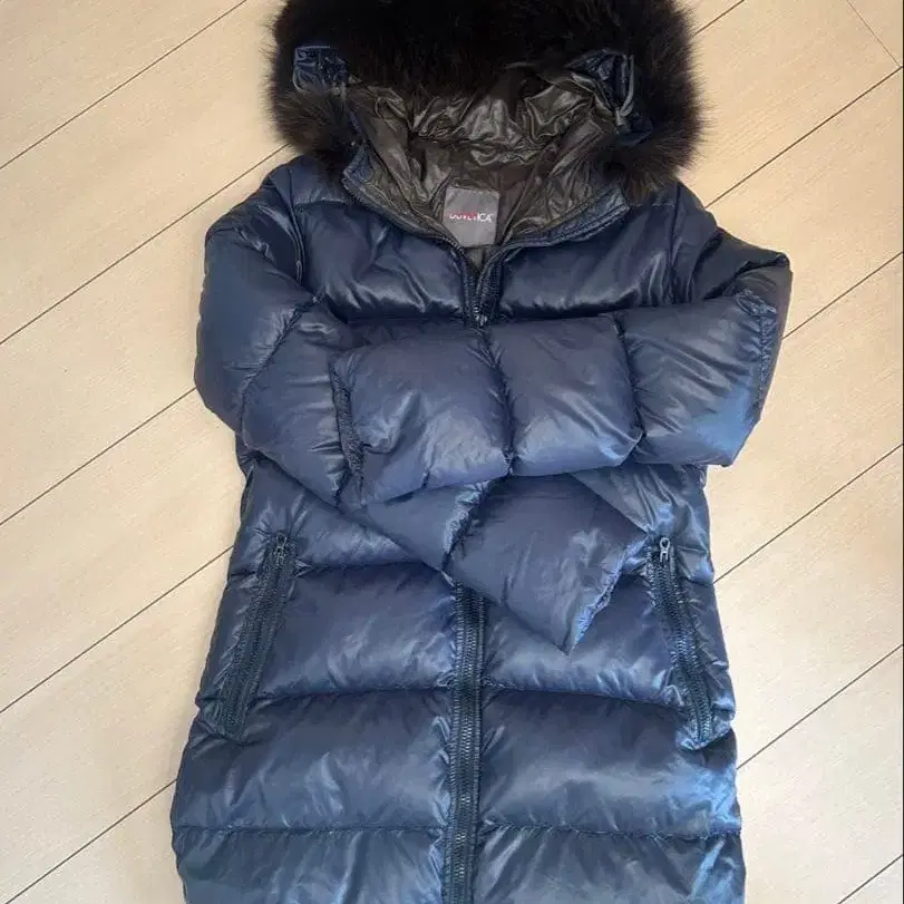 네이비 퍼 달린 롱 다운 자켓