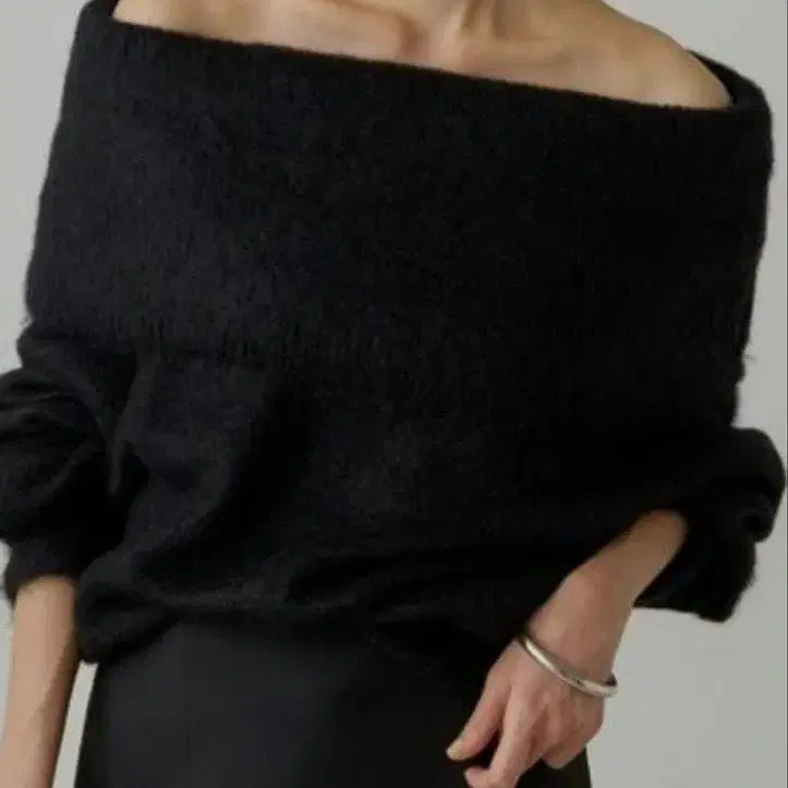 미사용 라운지 드레스 오프숄더 니트 스웨터 블랙