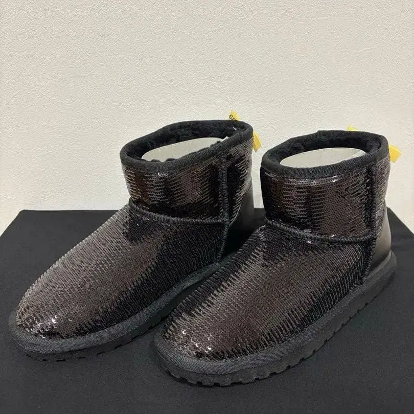 [ 미사용품 ] 블랙 스팽글 어그 부츠 숏 기장 보아 부츠 25.5cm
