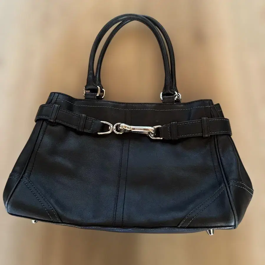블랙 가죽 핸드백