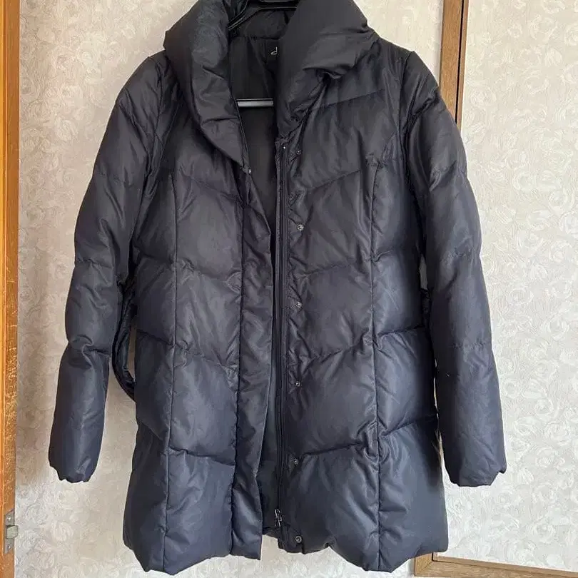 블랙 컬러 다운 코트 허리 리본 포함 9AR