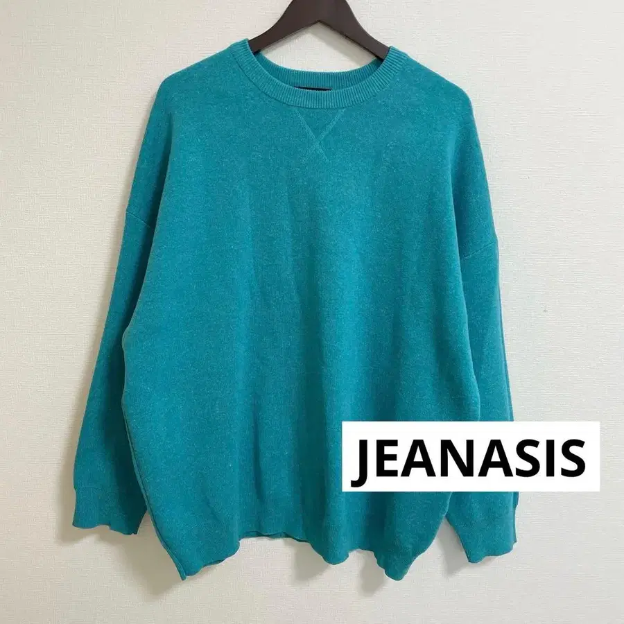 JEANASIS 12G W 자카드 볼륨 슬리브 풀오버 블루