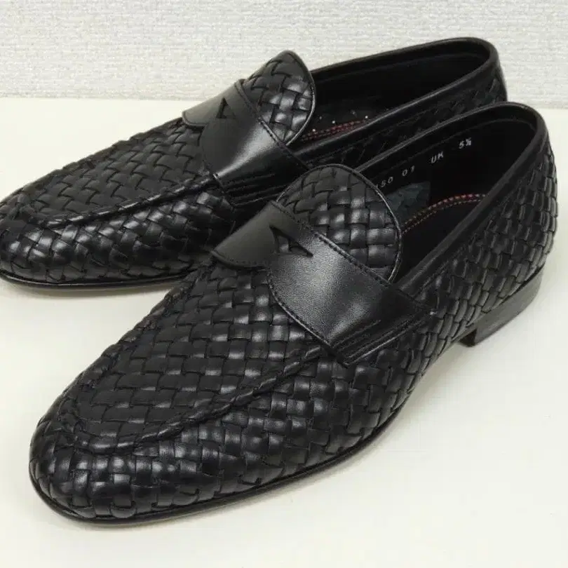 ◆ 새상품 UK 5.5 산토니 SANTONI 이탈리아제 인트레차트 뜨개질 가죽 로퍼 슬립온 가죽 신발 블랙 24.5cm 상당