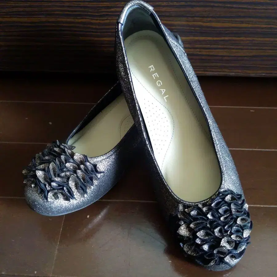 REGAL 플랫슈즈 골드 꽃 모티브 미사용품 23.5cm
