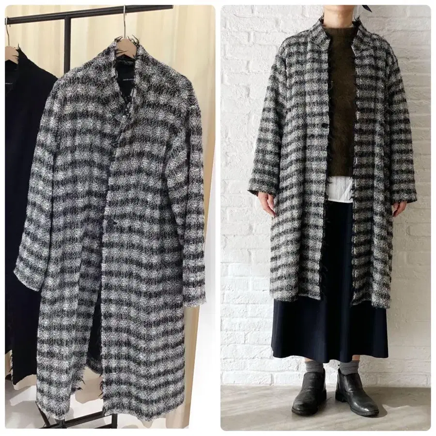 파드칼레 특유의 질감이 느껴지는 체크 무늬 코트입니다.