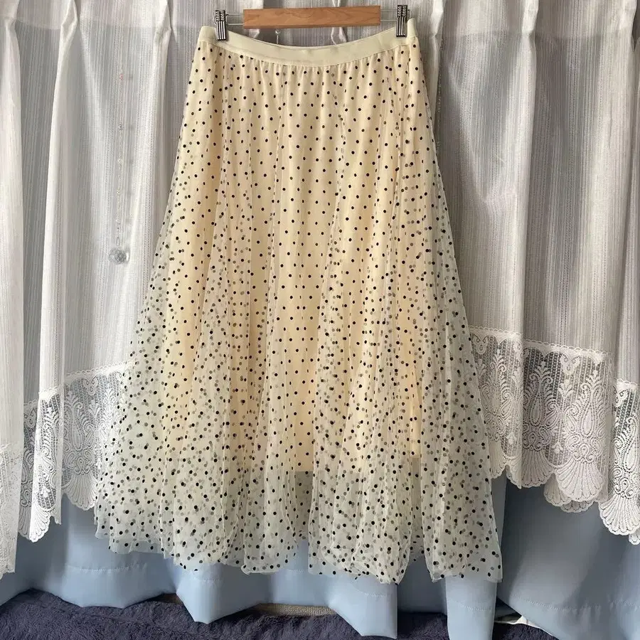 도트 무늬 튤 롱 스커트 쿠레트 LL~3L