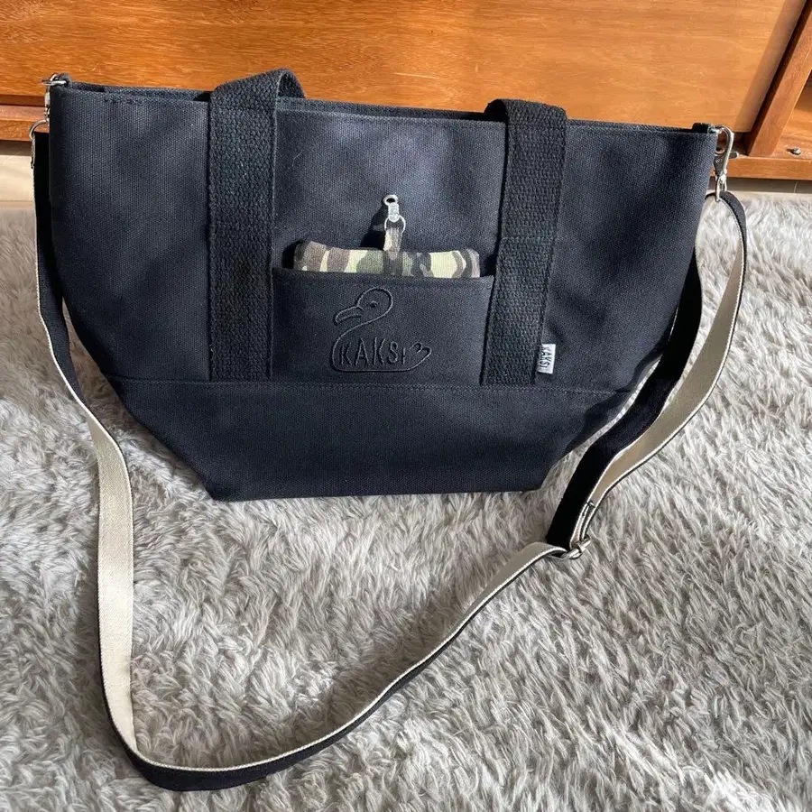 KAKSI 토트백 카모플라쥬 파우치 포함 블랙 숄더 포함