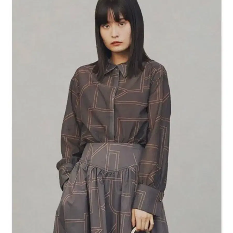 Lily brown 변형 격자 무늬 셔츠