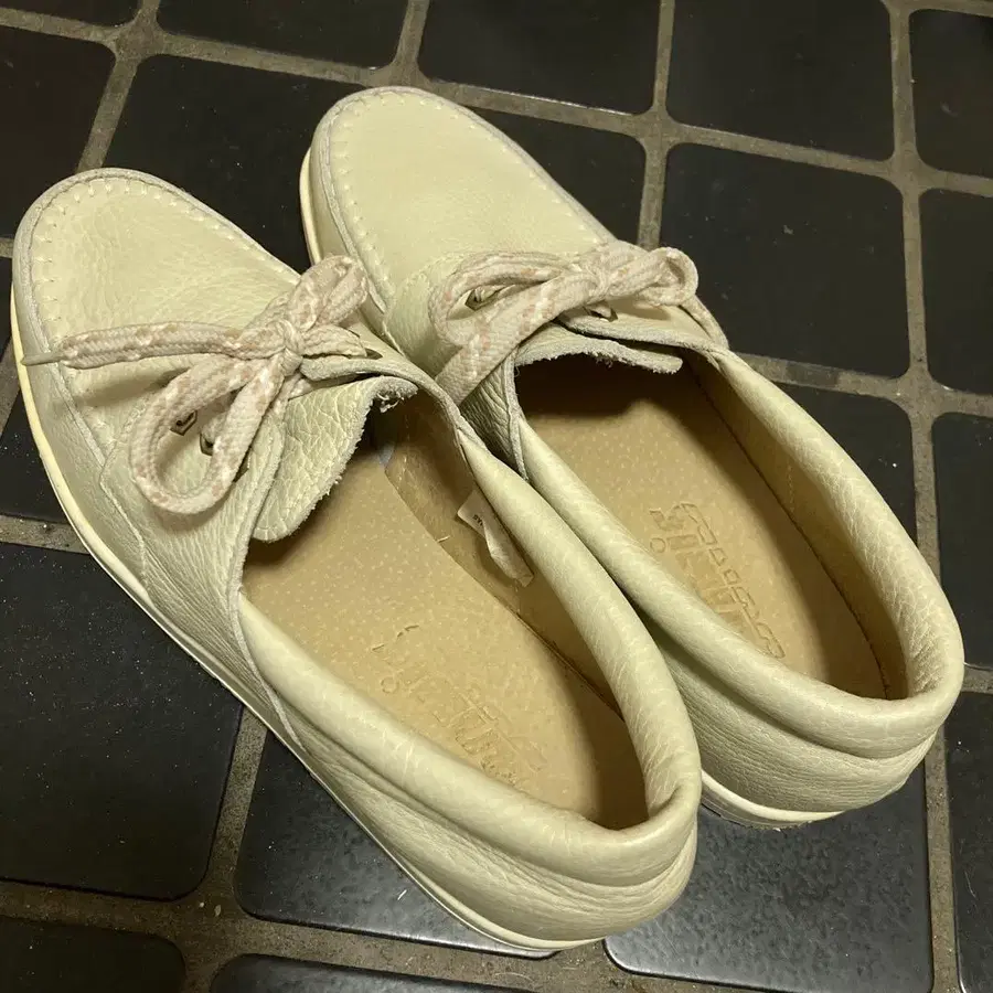 이탈리아제 스키퍼 화이트 가죽 데크 슈즈 E U41