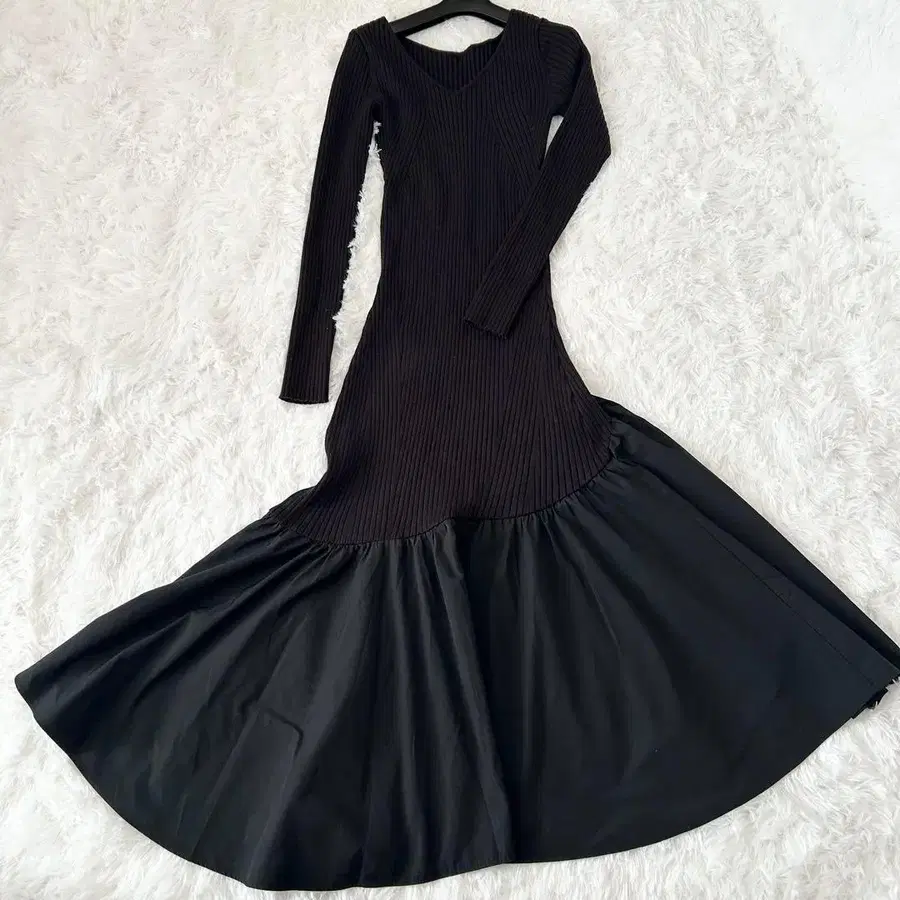 FRAY I.D 비대칭 절개 리브 니트 콤비 원피스 블랙 사이즈 0