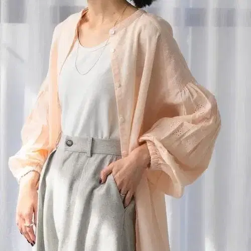 풍성한 실루엣의 소매가 여성스러움과 내추럴한 인상을 연출합니다.