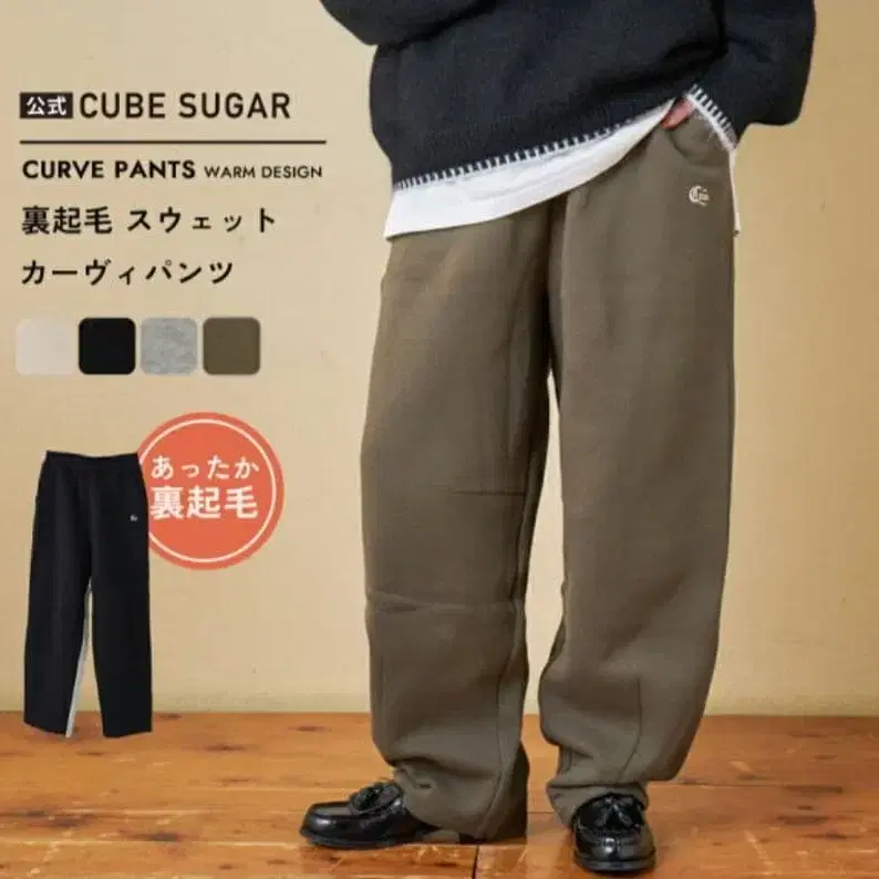 큐브 슈가 속기모 맨투맨 카키 팬츠