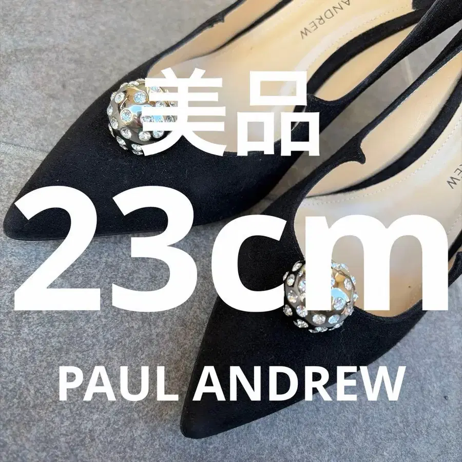 PAUL ANDREW [ 23cm ] 비쥬 장식 블랙 스웨이드 펌프스
