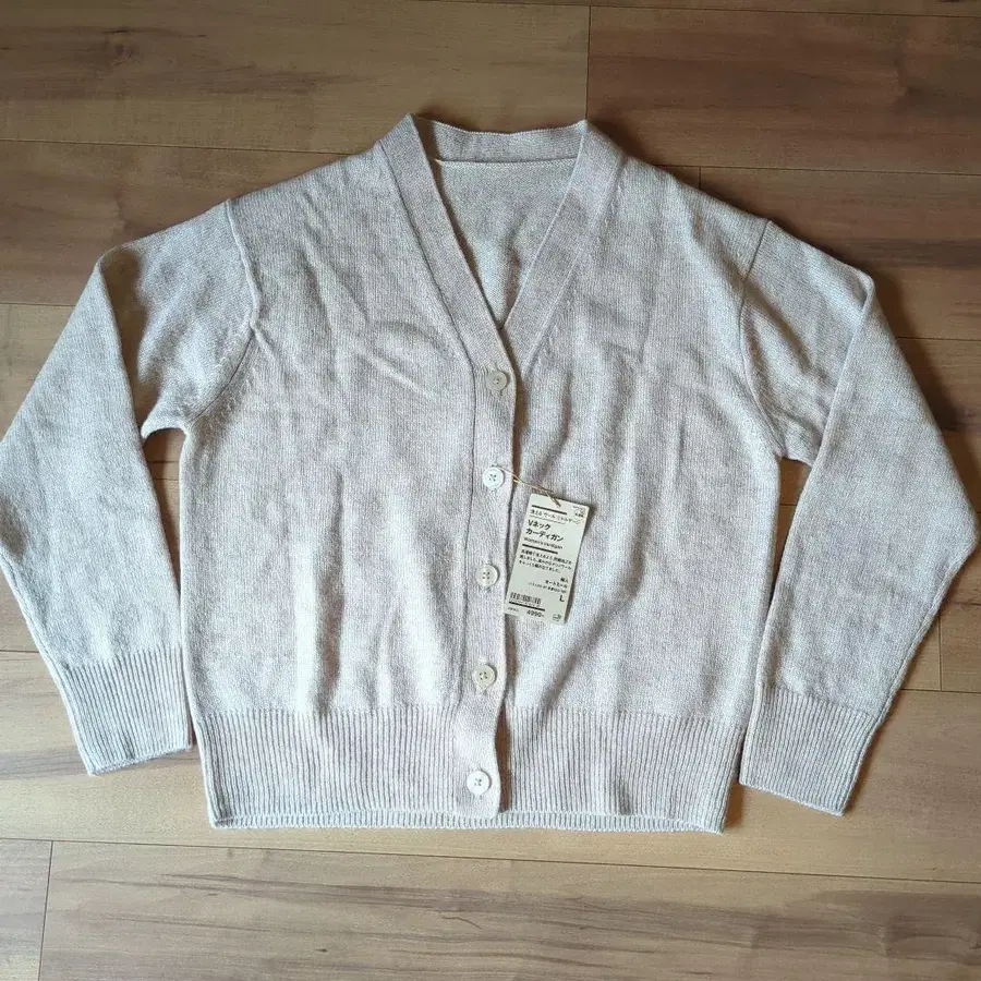 세탁 가능한 울 V넥 가디건 L 사이즈 베이지