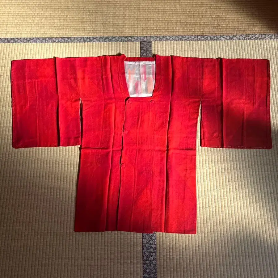 순수 실크 빨간색 도행 코트 교육용 실 포함, 자투리 천 있음