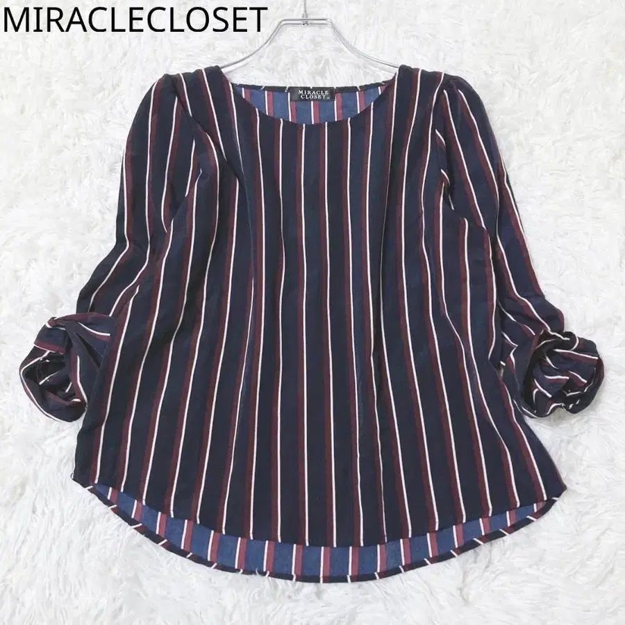미라클 옷장 블라우스 스트라이프 소매 리본 7부 소매 네이비 M 출퇴근