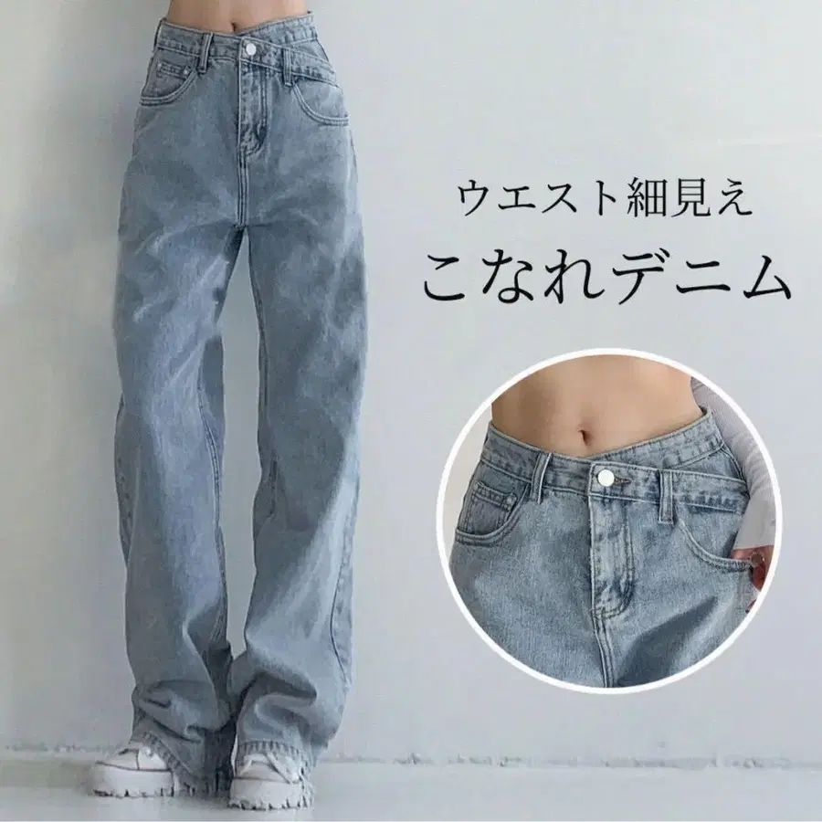 라이트 블루 스트레이트 데님 자연스러운 디자인