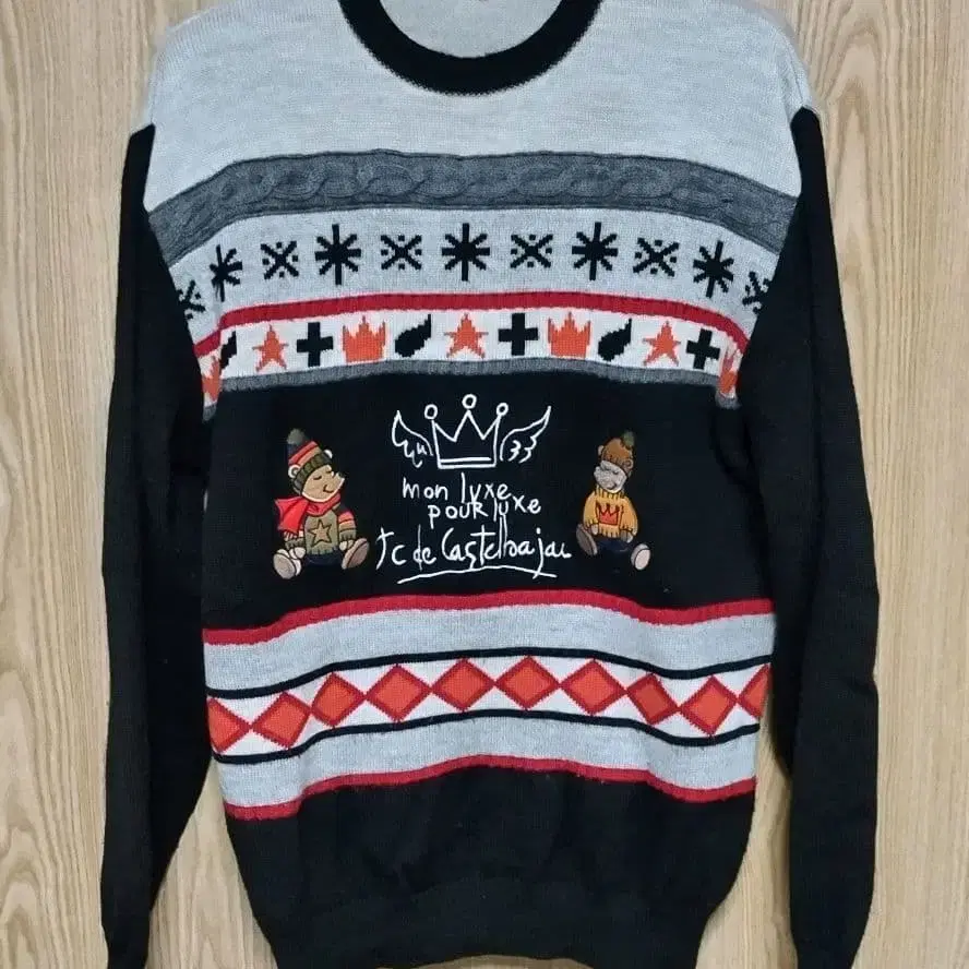 CASTELBAJAC 곰 자수 캐주얼 니트 스웨터 L 사이즈