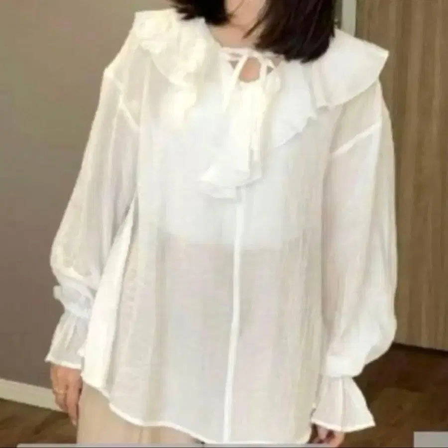 시마무라 Ammy 콜라보 시어 프릴 블라우스 화이트 M 사이즈