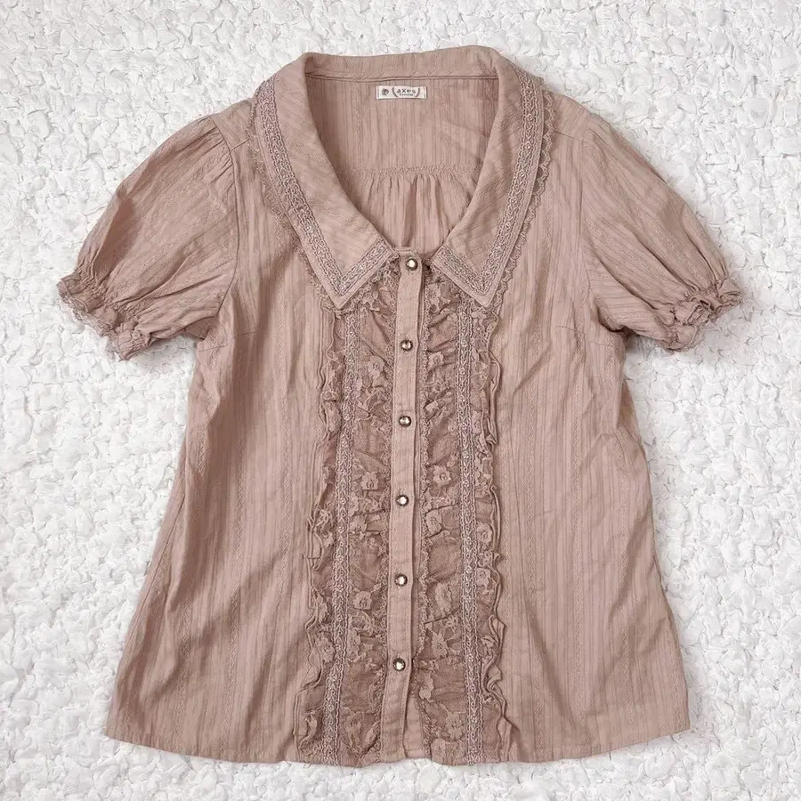 [ axes femme ] 레이스 블라우스 반팔 베이지 핑크 발레코어
