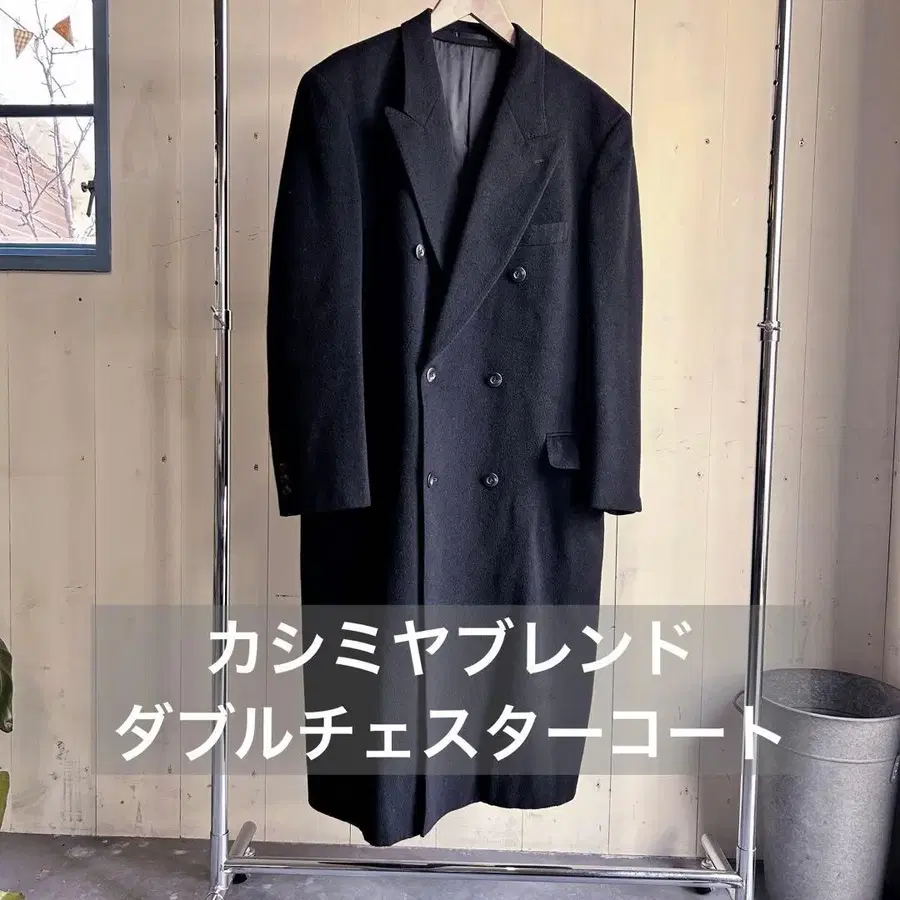 • 캐시미어 울 더블 브레스트 체스터 코트 롱 코트 L 네이비