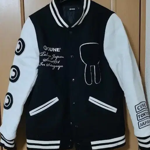 CUNE 바시티 자켓 팬더 사이즈 1 블랙/화이트