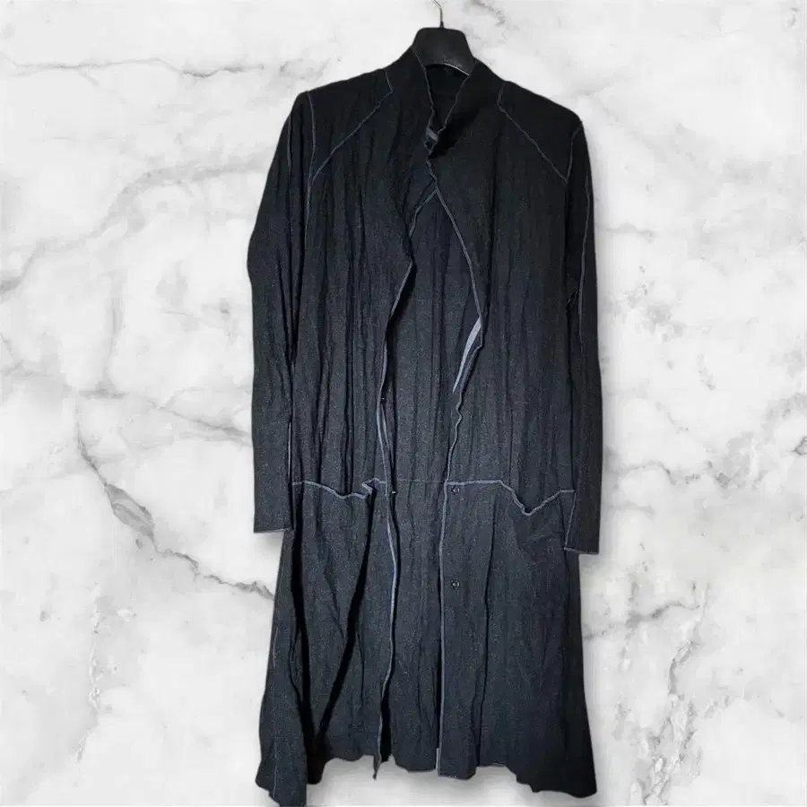 차콜 그레이 주름 가공 니트 롱 가디건