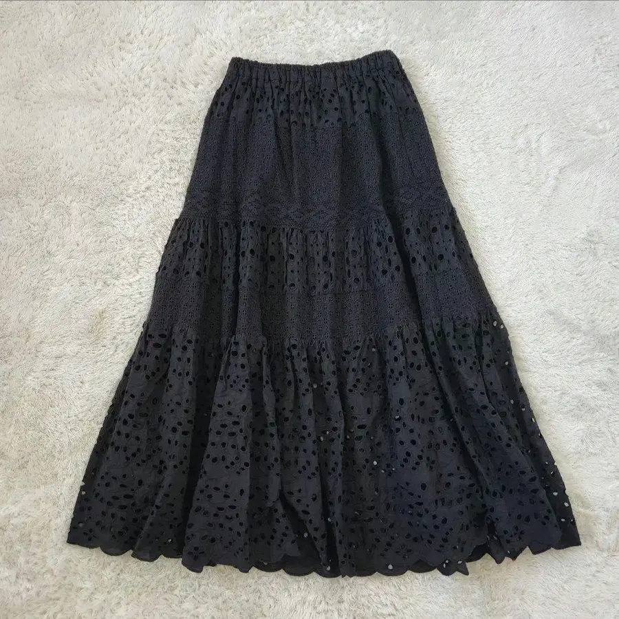 컨디션 최상 IENA 코튼 레이스 캉캉 스커트 블랙 36