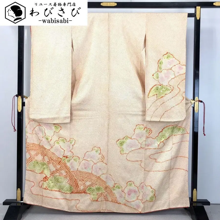 후리소데 총 쥐어짜기 추상 꽃 무늬 옅은 감귤색 K-4542