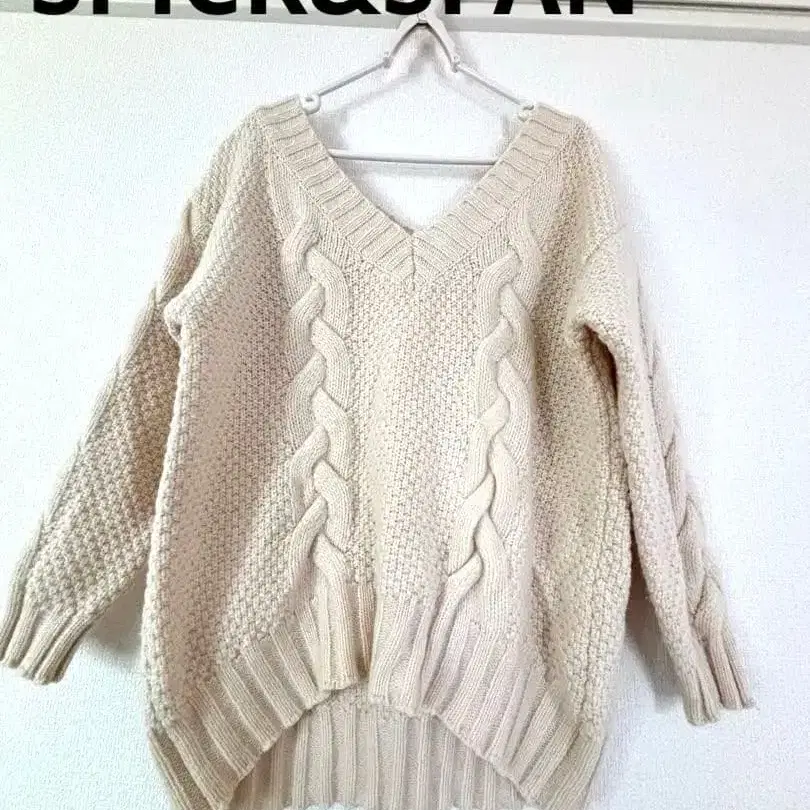 스픽 앤 스팬 V넥 케이블 짜임 니트