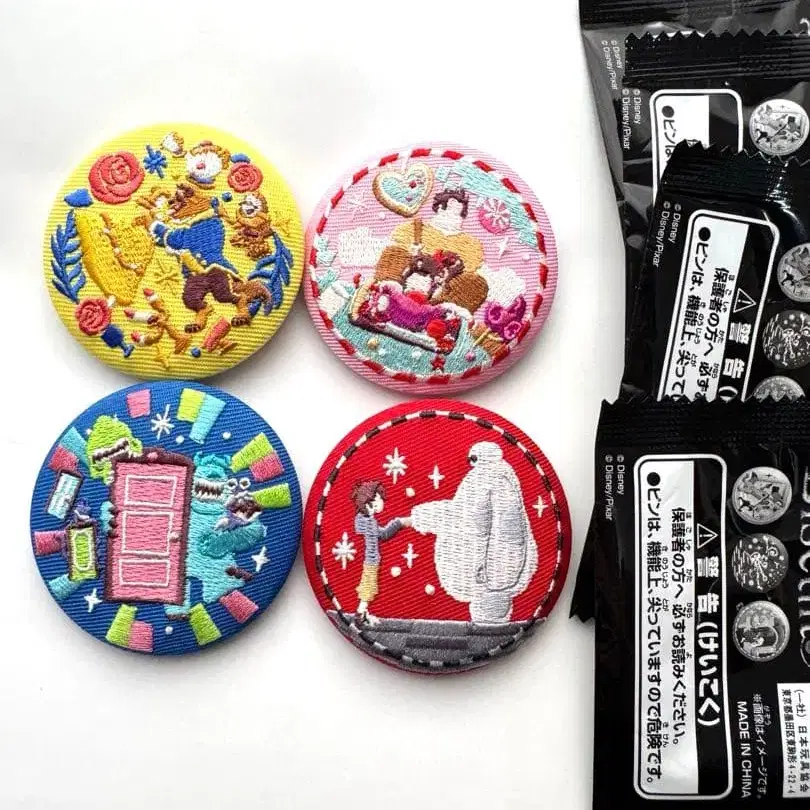 디즈니 캐릭터 자수 캔뱃지 부착 비스킷 4개