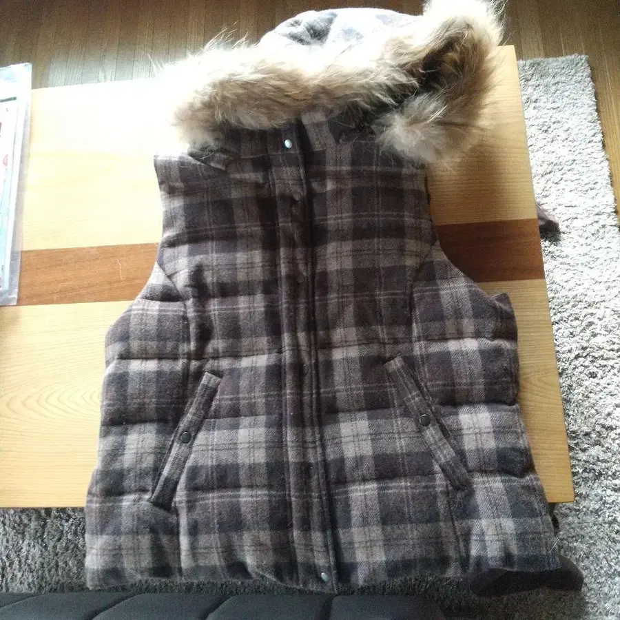 체크 무늬 다운 베스트 (퍼 포함)