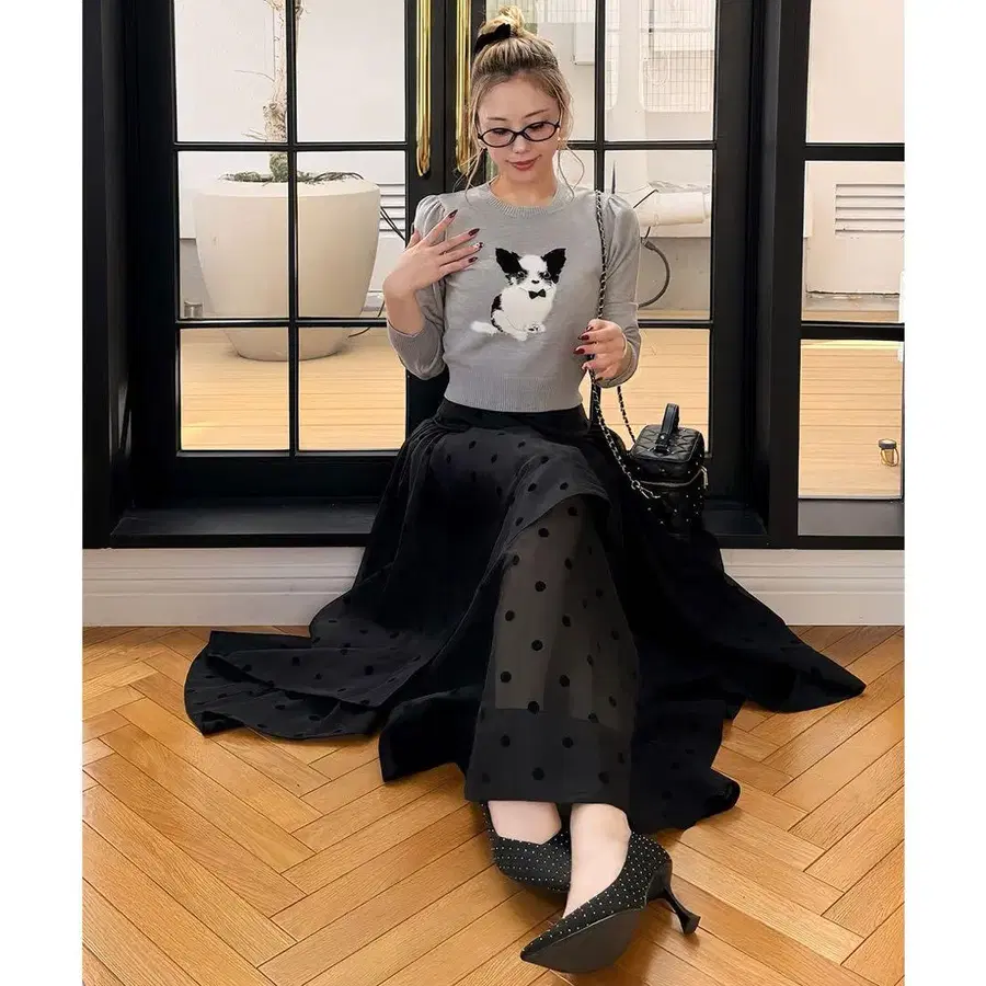 시어 도트 플레어 스커트 블랙 로얄 파티